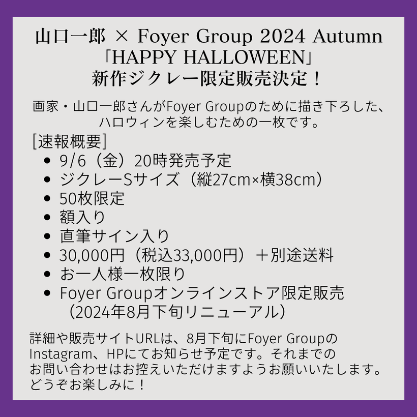 詳細や販売サイトURLは、8月下旬にFoyer GroupのInstagram、HPにてお知らせ予定です。