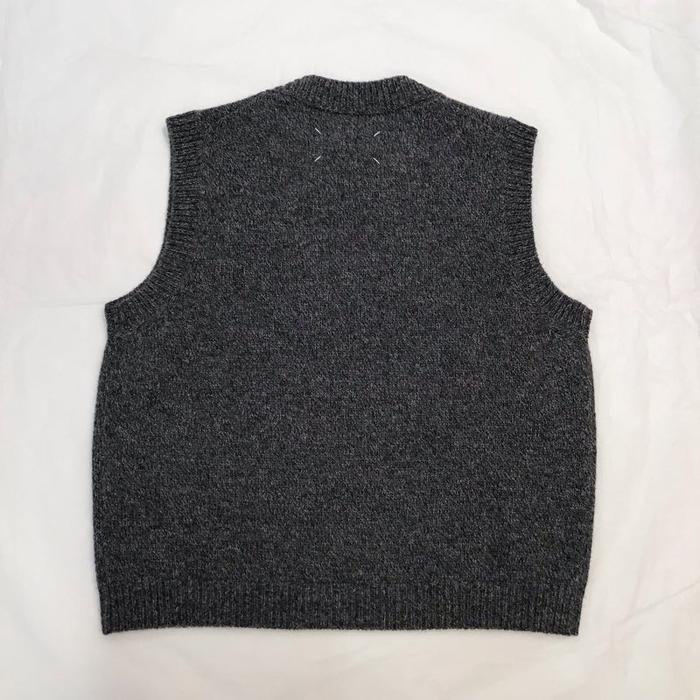 リブ編みのトリミングが施されたシェットランドウールのミニマムなニット
