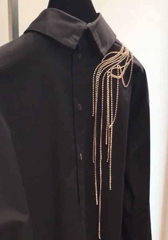 DRIES VAN NOTENのビジュー付きハイネックブラウス ビジューの煌めきに コットン素材 メンズライクなシルエット の組み合わせが新鮮 ¥173,800 日専連ベネフル12回無金利キャンペーン中✨詳しくはスタッフまで @_tsuneya_foyer お問い合わせ、通販はInstagramDM、TELにて承っております