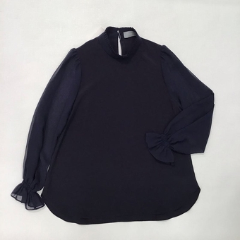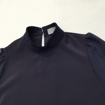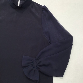 J&M DAVIDSON 細かいプリーツ付きハイネックが凛とした女性らしさを演出 ふんわりとした袖のデザインは揺れ感のあるシアー素材で 知的なネイビーを華やかに ¥64,900 インナーキャミソール付き ポリエステル製 手洗い可能 #jmdavidson