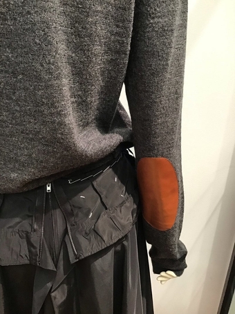 メゾンの特徴的なエルボーパッチでリバイバル感を演出した
