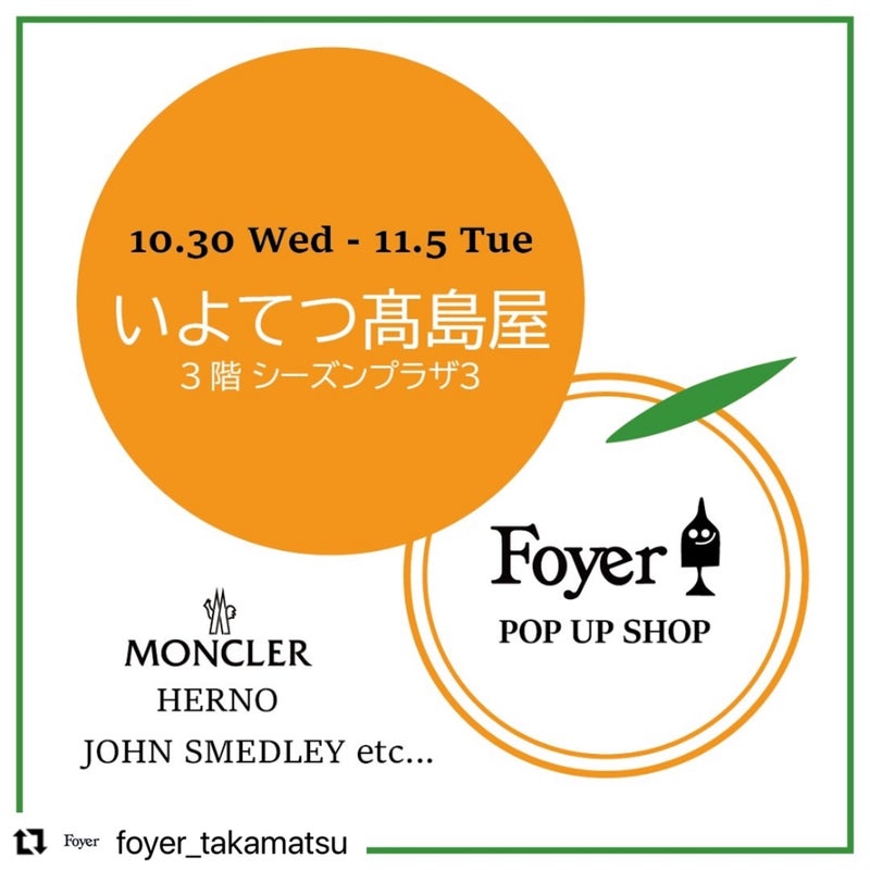 #Foyergroup #香川 #高松 #丸亀町商店街 #高松アパレル #アパレル #アパレルブランド #onsite #いよてつ髙島屋 #いよてつ高島屋 #愛媛 #松山 #ポップアップ #moncler #モンクレール #herno #ヘルノ #johnsmedley #ジョンスメドレー #アウター #ダウン #コート #冬スタイリング #冬アイテム #新作 #新作アイテム #髙島屋 #愛媛県松山市 #POPUPSHOP #高島屋