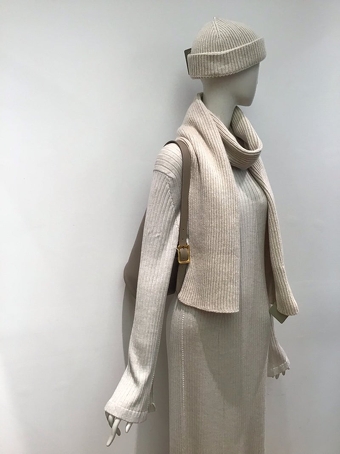 ニット帽とマフラーをプラスしたワントーンスタイル