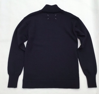 Maison Margielaの モックネックセーター ヴァージンウールを100%使用した綺麗な表面感 日常使いしやすいネイビーは バックに入ったメゾンのシグネチャーである白い4ステッチとのコントラストも際立つ ¥160,600 #maisonmargiela #メゾンマルジェラ #マルジェラ #マルジェラニット #高松セレクトショップ #onsite #ootd #outfit