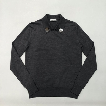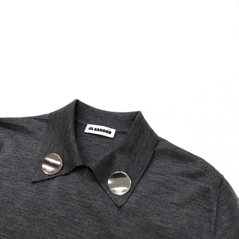 JIL SANDERの ジュエルディテールポロニット ハイゲージのグレーニットに シルバーのジュエルが 旬の空気感を演出してくれて ジュエルは取り外しも可能なので 雰囲気を変えて楽しめる ¥206,800 #jilsander #ジルサンダー #ジルサンダーニット #高松セレクトショップ #onsite #ootd #outfit
