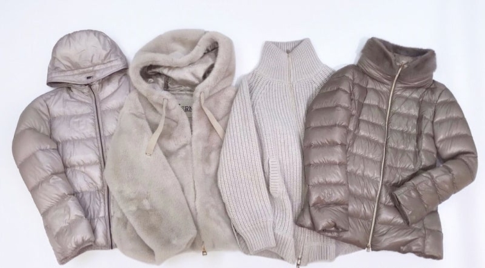 HERNO Beige short outerwear 左から 超軽量なポケッタブルダウン ¥107,800 癒しのふわもこエコファー ¥141,900 背面がダウンになったニットジャケット ¥217,800 取り外し可能なファー付きのエレガントなダウン ¥163,900 #herno #ヘルノ #ヘルノベスト #ヘルノダウン #高松セレクトショップ #onsite #ootd #outfit