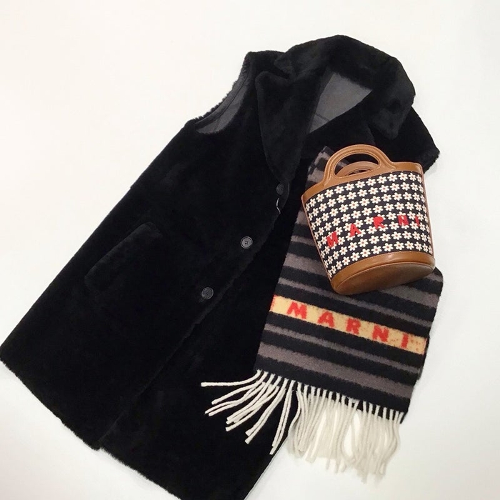 MARNIのムートン リバーシブルで着用できる ムートンジレは 特別感のある1着 小物は赤を差し色に ホリデーシーズンの 気分を盛り上げて Gilet ¥612,700 Bag ¥171,600 Stole ¥58,300 日専連ベネフルカード12回キャンペーン中✨詳しくはスタッフまで #marni #マルニ #高松セレクトショップ #onsite #ootd #outfit