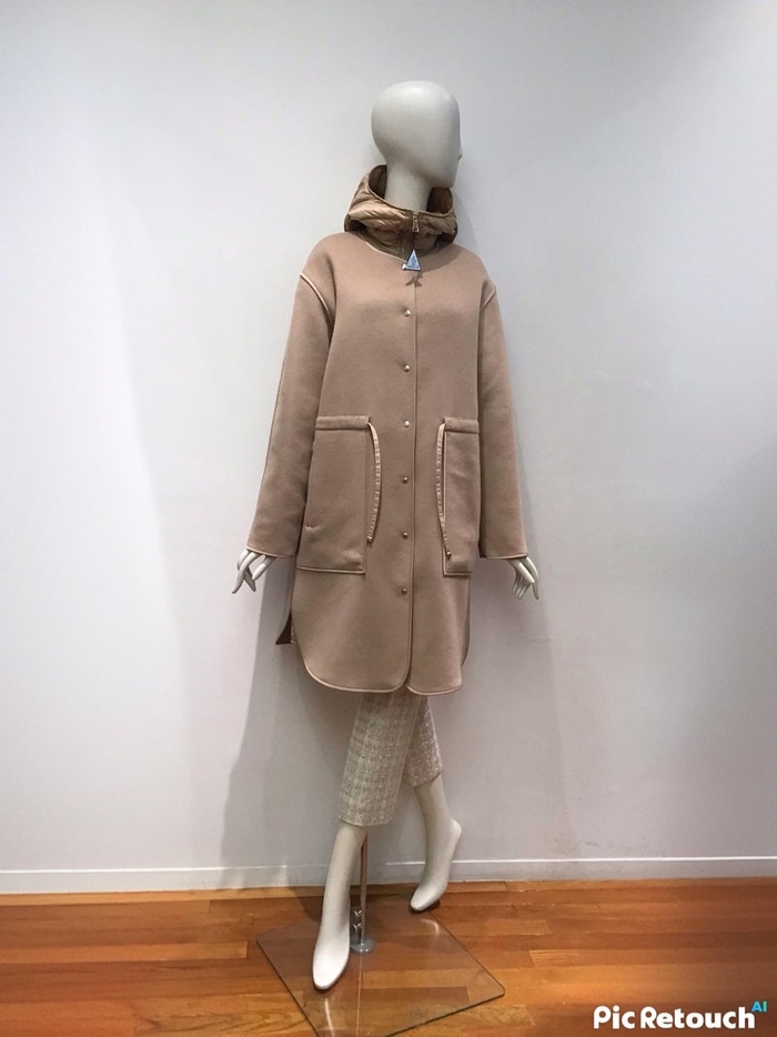 外側のコートはウール素材とカシミヤ素材を使用し、軽く暖かく