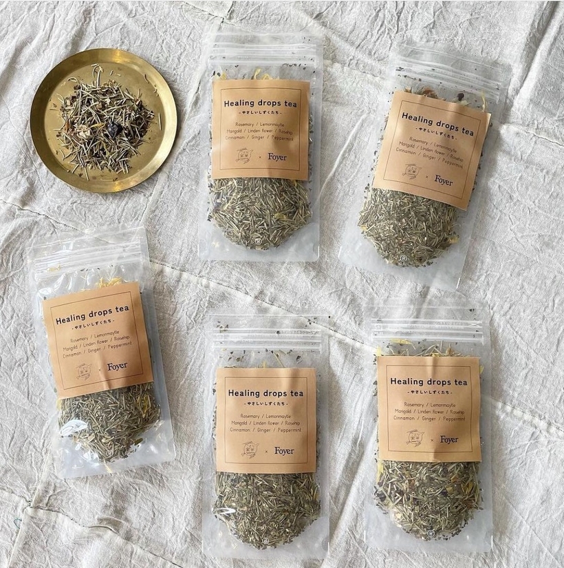 ハーブティーを取り扱うことり薬草さんにFoyerオリジナルのハーブティー「Healing drops tea -やさしいしずくたち-」を作っていただきました。