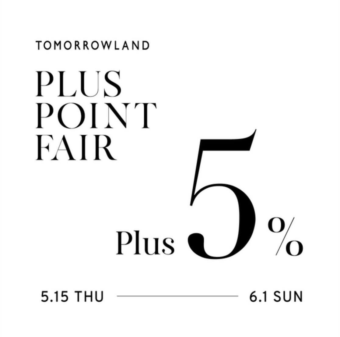 トゥモローランド高松店にて、日頃のお客さまへの感謝の気持ちを込めて、プラスポイントフェアを開催いたします。 5/15(木)〜6/1(日)の期間中、通常ポイントに加え5%分のポイントをプレゼントいたします。 店頭でお会計の際は、メンバーズカードまたは、モバイルカードをご提示ください。 只今トゥモローランド高松店では、新作を豊富に取り揃えております。 ぜひ、この機会にご利用ください。 新規ご入会のお客様も対象となります。