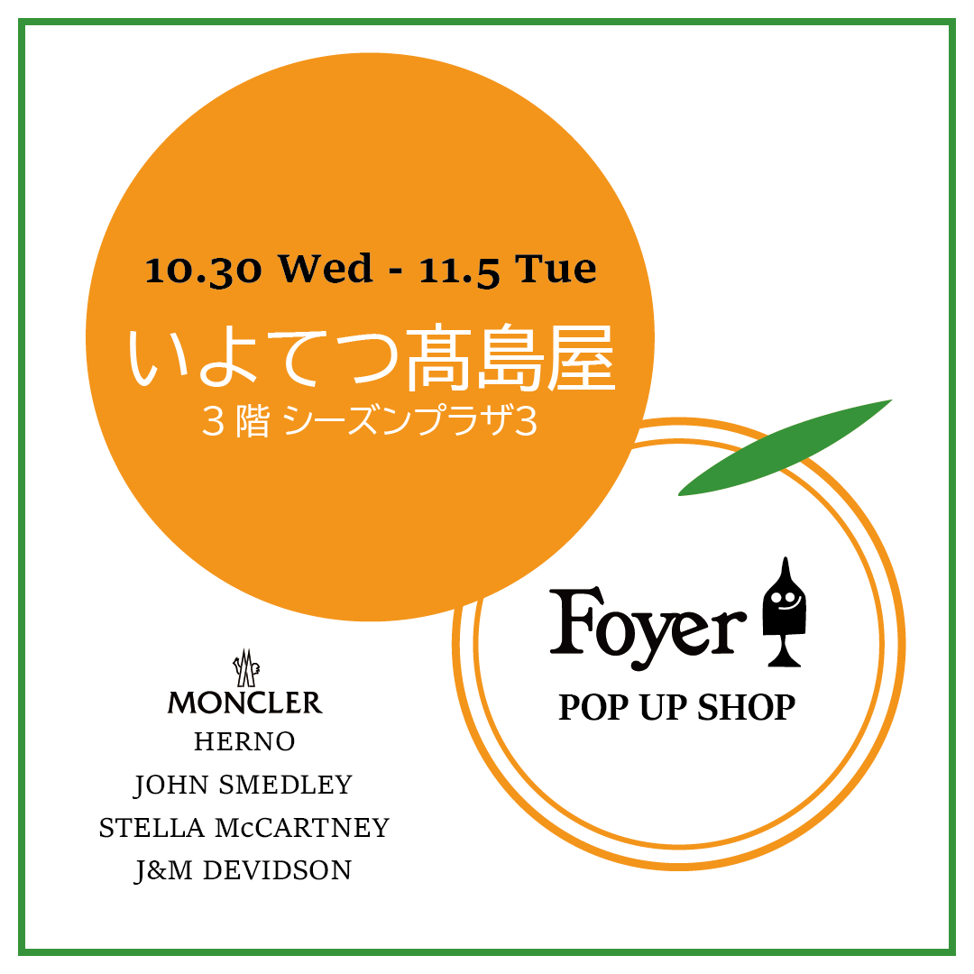 この度Foyer Groupは、前回も大好評いただいたPOP UP SHOPをお隣の愛媛県松山市「いよてつ髙島屋」に出店いたします。