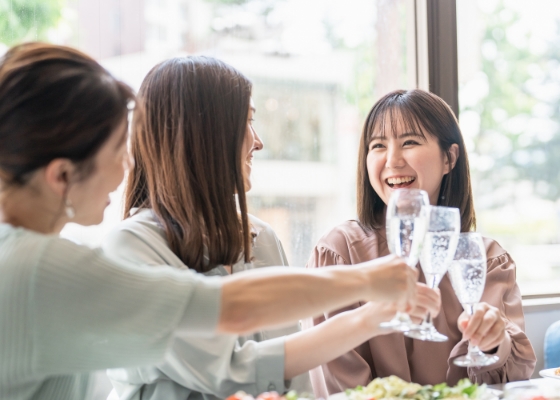 - 日頃のメンバーの頑張りに感謝して、本社で立食パーティーを開催。こだわりの食を楽しみながら、いつ来てもいつ帰ってもいい自由なスタイルで、気兼ねなく参加できるイベントです。